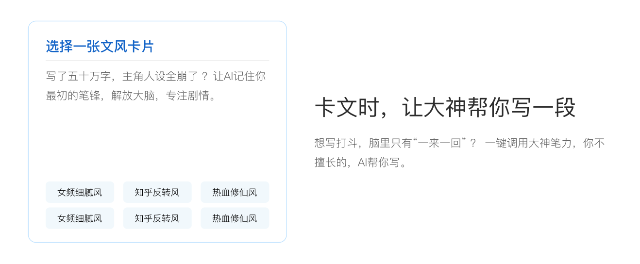 知乎/番茄平台体+大神同款等上百种文风任选 担心AI生成的人机味太重?no!那早已是过去式