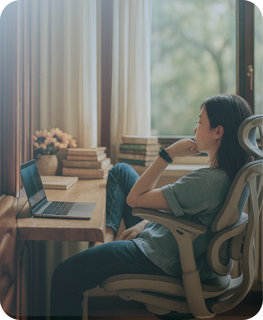 工作日深夜台灯暖黄,软椅拖住疲惫的肩膀。